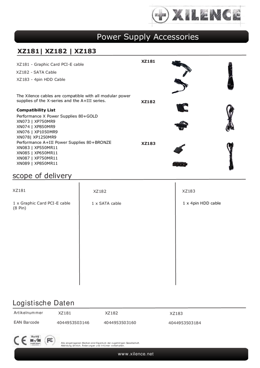 Das 4pin HDD Kabel ist mit allen modularen Netzteilen der X-Serie und der A+III-Serie kompatibel.