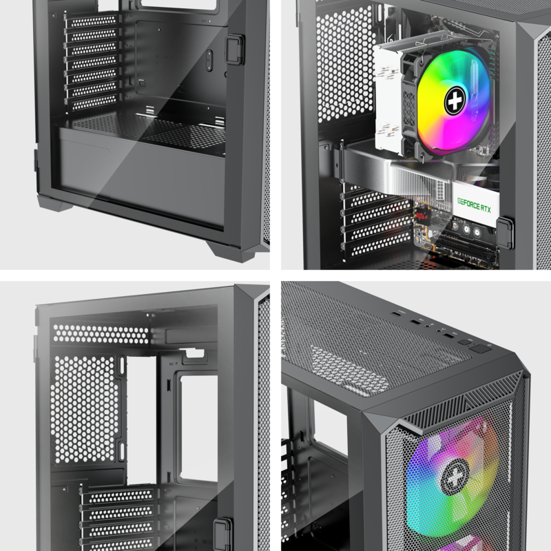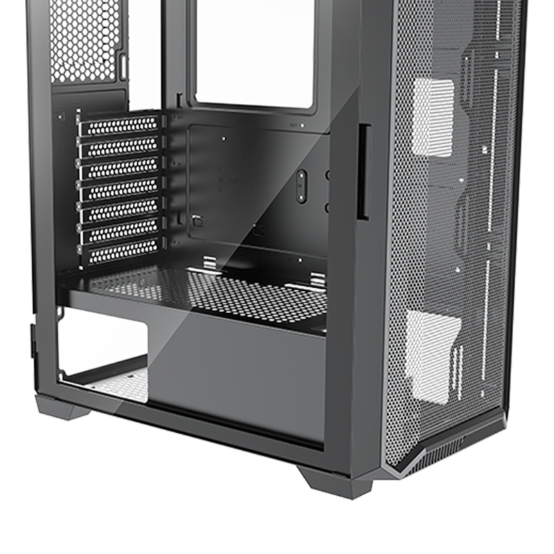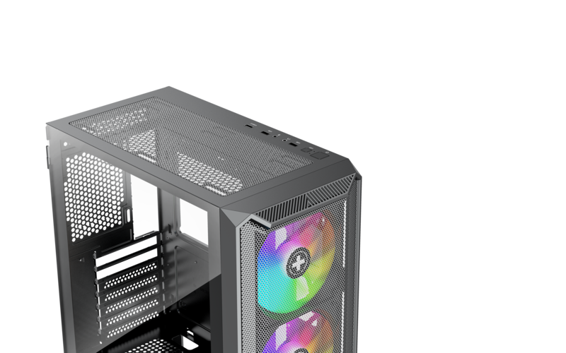 Die Mesh-Front sorgt für einen luftdurchflutenden Airflow, damit deine Hardware stets kühl bleibt.