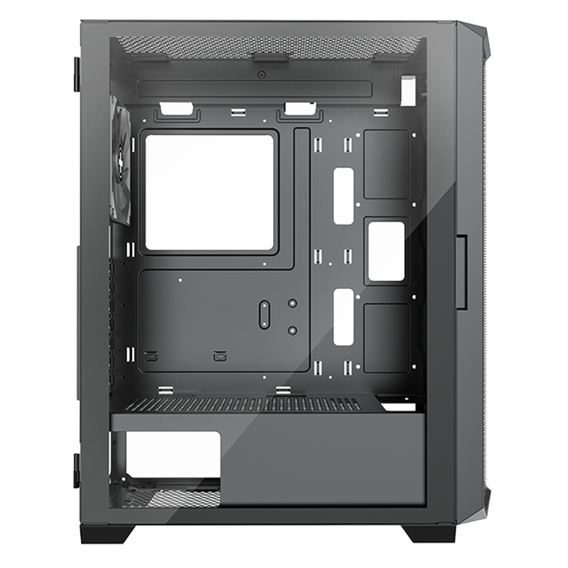 Das durch Scharniere bequem zu öffnende Glassidepanel ermöglicht einen mühelosen Blick & Reinigung auf die eigenen Gaming-Komponenten.
