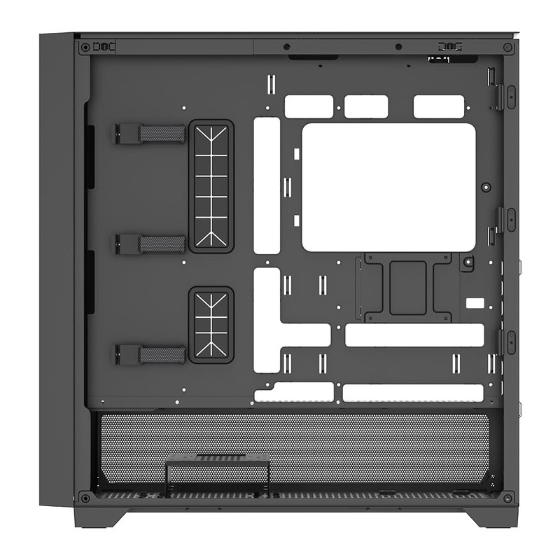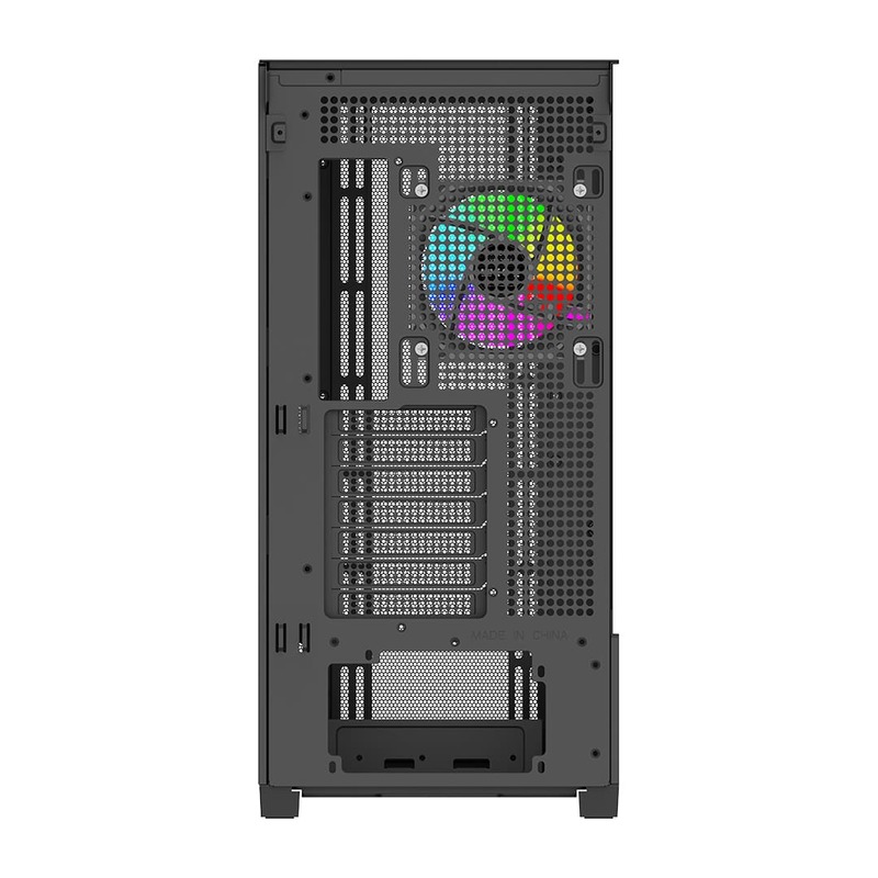 Das robuste SPCC-Stahlgehäuse mit Glasseitenteil bietet großzügigen Platz für Extended-ATX-, ATX-, micro-ATX- und mini-ITX-Mainboards sowie leistungsstarke Hardware wie GPUs bis 440 mm und CPU-Kühler bis 180 mm.