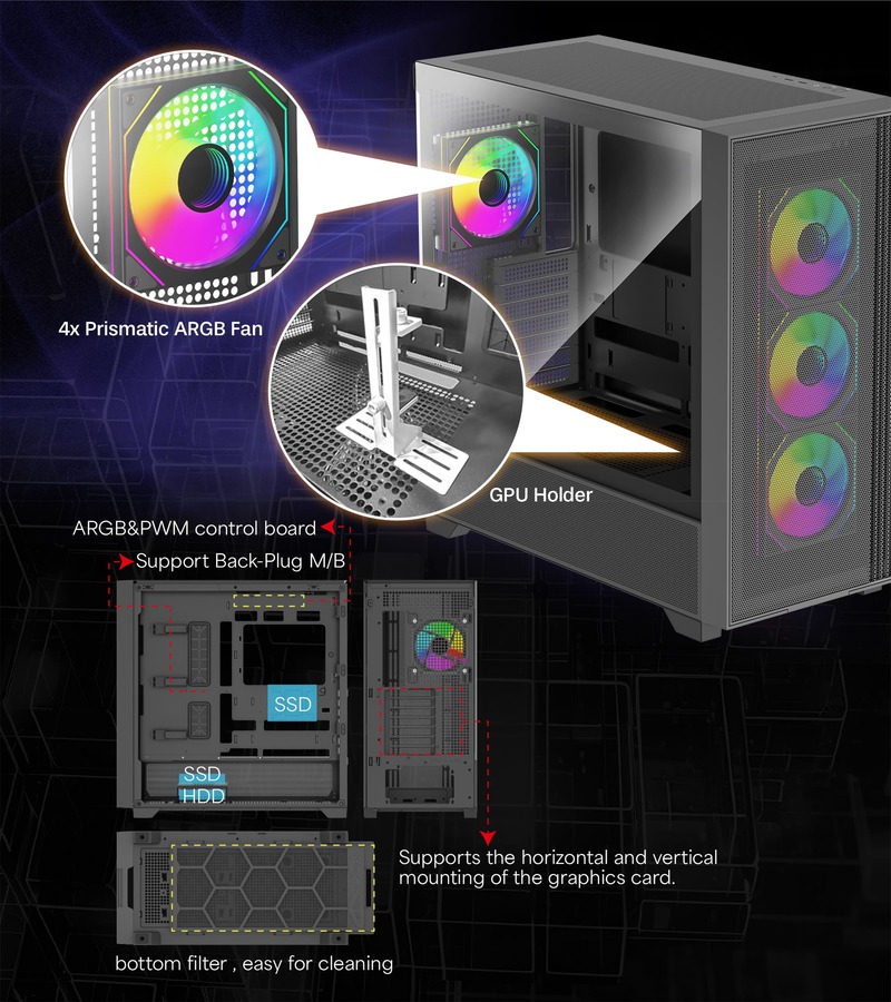 4 × ARGB Lüfter | ARGB/PWM Hub | Grafikkartenhalter