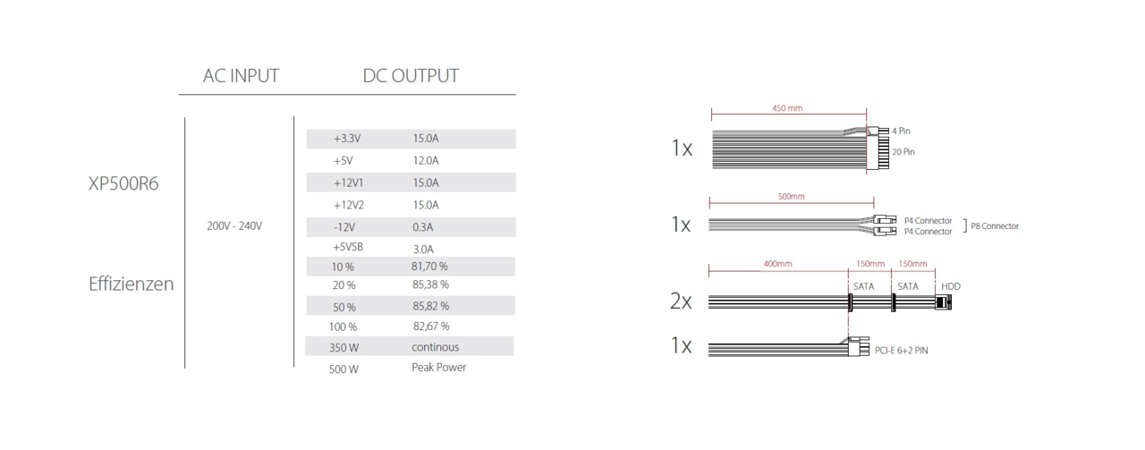 | ATX-Mainboard (20+4-pin) | 1 |