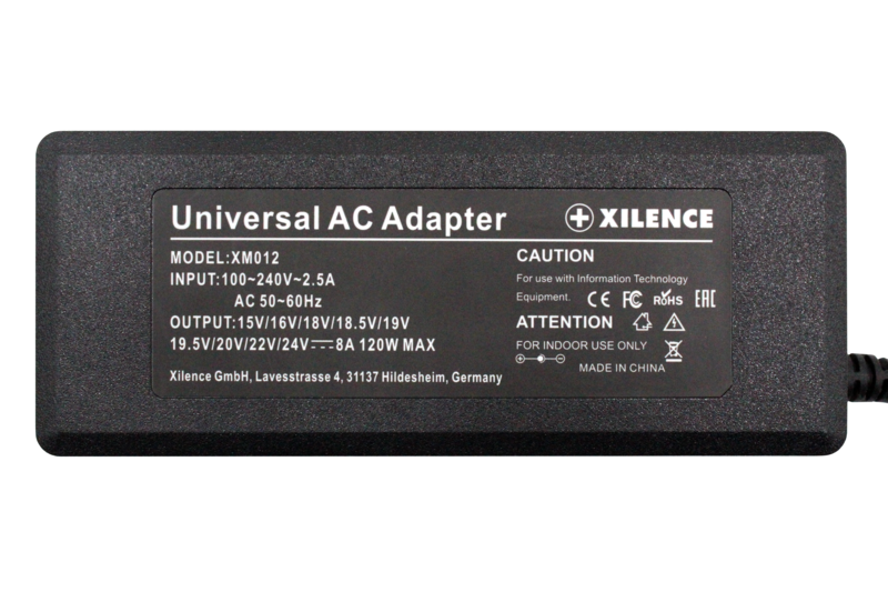 When looking at the new lightweight Xilence notebook PSU, it does not reveal its powerful interior. Nevertheless, the slim power pack has power with a stable output voltage of 20V. It achieves a remarkable efficiency of over 85%. The compact power pack includes eleven plug adaptors in order to supply the most popular notebooks and netbooks with power. The integrated LED display shows information on the output voltage at all times. Full-range allows the power supply to be used worldwide. The PSU reliably operates at input voltages between 100V and 240V.