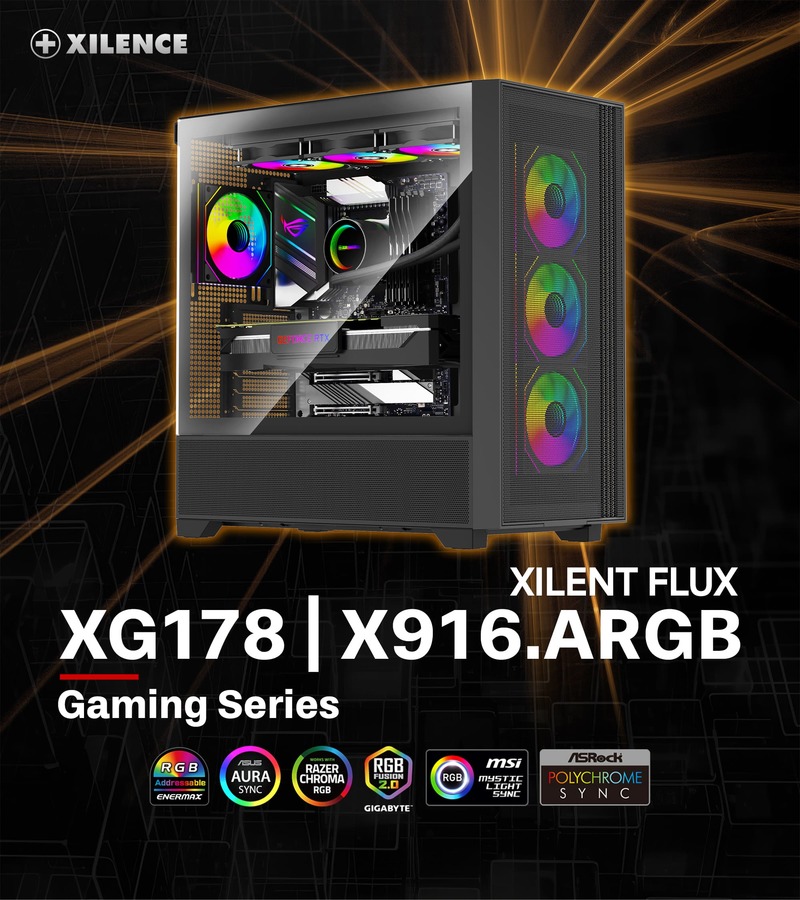 With USB 3.2 Gen 2, 2× USB 3.0, and HD-Audio, the Xilent Flux X916.ARGB is fully equipped—ideal for cost-conscious gamers and system builders who want to combine performance, flexibility, and modern aesthetics.