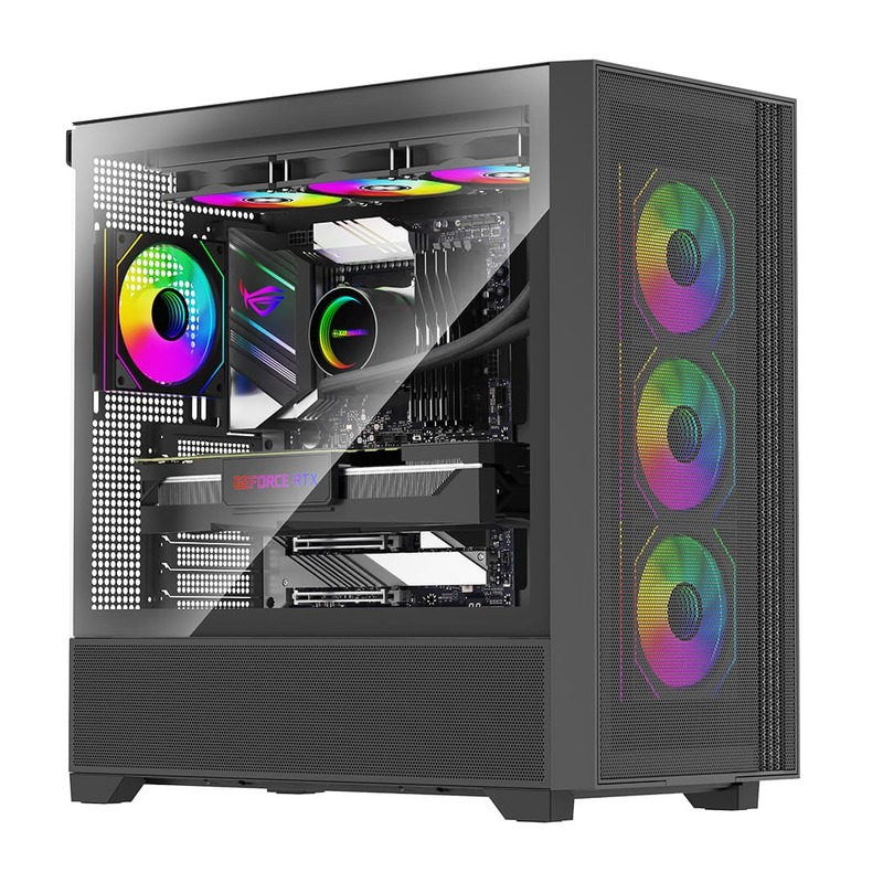 The sturdy SPCC steel construction with a tempered glass side panel provides ample space for Extended-ATX, ATX, micro-ATX, and mini-ITX motherboards, as well as high-performance hardware such as GPUs up to 440 mm and CPU coolers up to 180 mm.