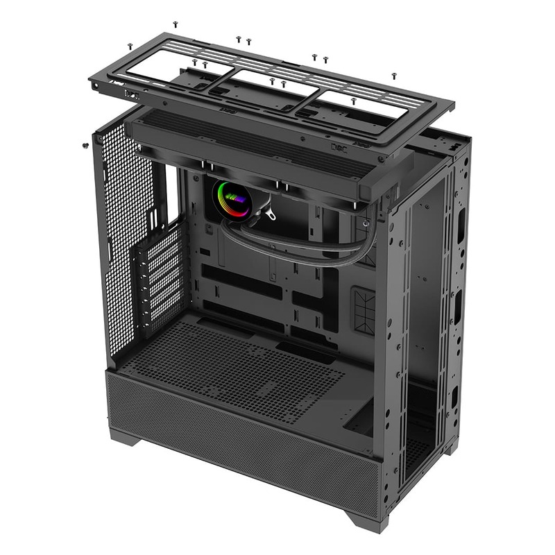 Good cooling performance & flexible options: Space for multiple fans and water cooling at the front, top, and rear, perfect for stable temperatures. The removable top panel makes the installation of radiators and fans significantly easier.