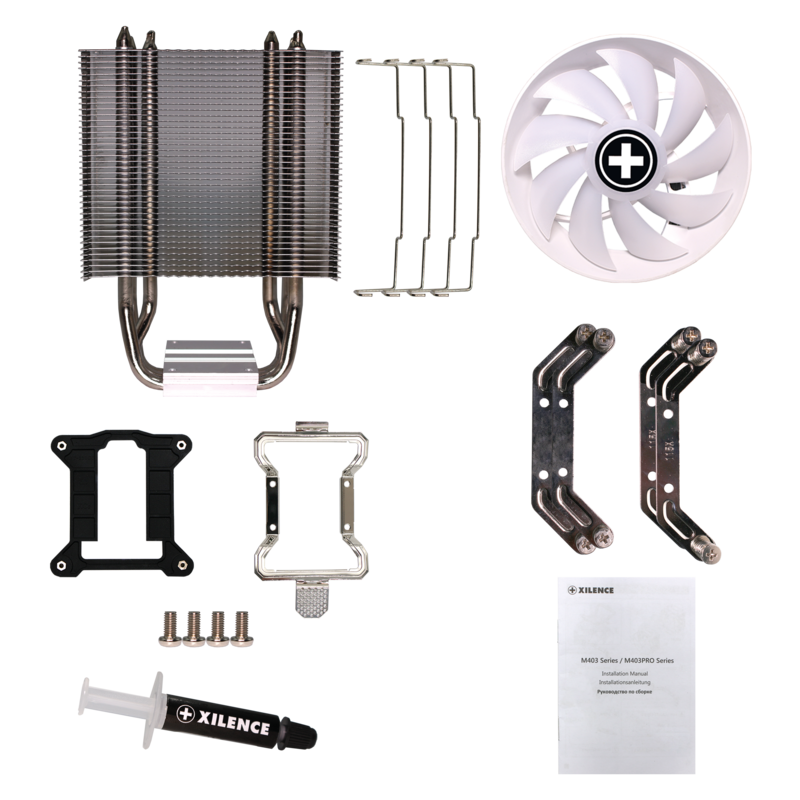 El disipador para CPU formato torre compacto M403.PRO es el nuevo cooler multisocket de la serie Performance C. Dispone de tres tubos de calor extremadamente eficientes que evacuan el calor residual hasta 150 vatios hacia las aletas de refrigeracíon innumerables lo que le predestina para los procesadores multi-core. Gracias al contacto directo de la CPU con los tubos de calor, la transferencia de calor entre CPU y cooler es extraordinariamente eficiente y muy homogénea. Con el multisocket, el M403 es utilizable con todos los sockets Intel y AMD actuales. Aparte del disipador y el ventilador PWM 120 mm viene tanto con un módulo de retención para los sockets 1150/1151/1155/1156/1200/1700/1851 como otro para AM4/AM5 indicaciones de montaje ilustradas y un tubo de pasta térmica.
