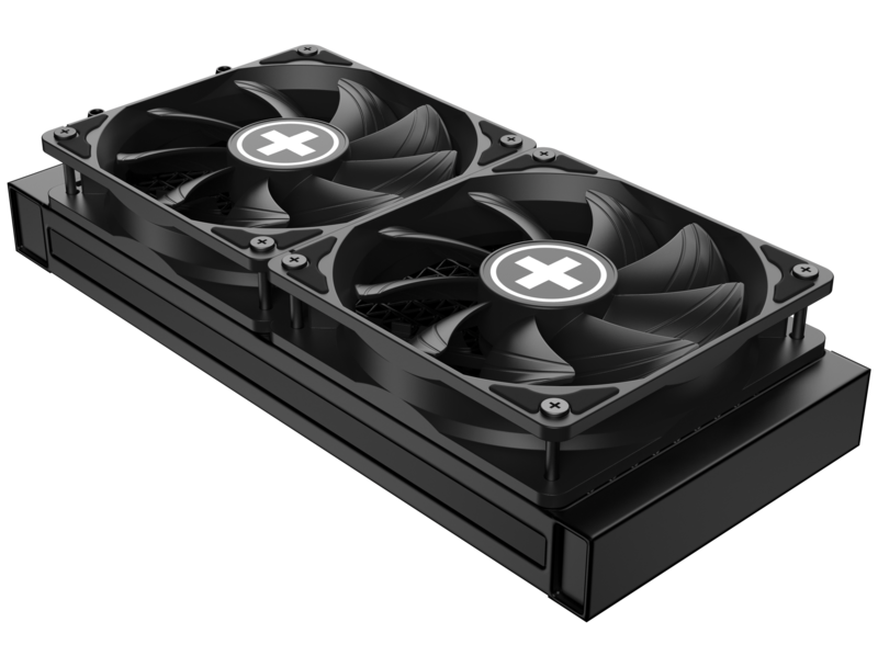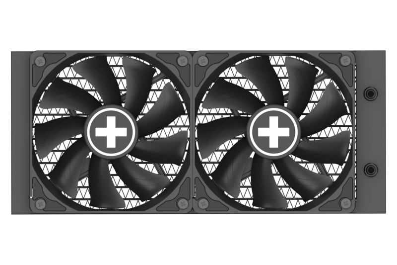Available as black 240mm version with ARGB illuminated pump head and 2x FDB fans.