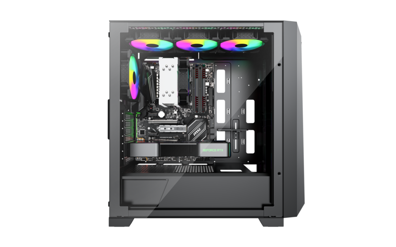 Les quatre ventilateurs supplémentaires, dont trois s'allument sur le panneau avant, contribuent non seulement à un bon flux d'air, mais créent également une atmosphère lumineuse fascinante qui transforme l'expérience de jeu en un spectacle spectaculaire.