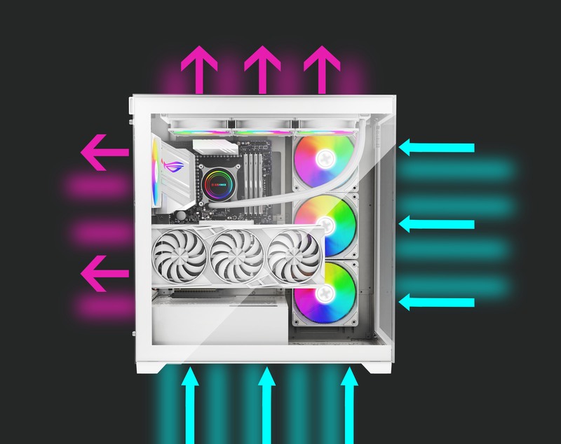 De nombreuses options de refroidissement : Malgré le panneau avant en verre, le boîtier garantit