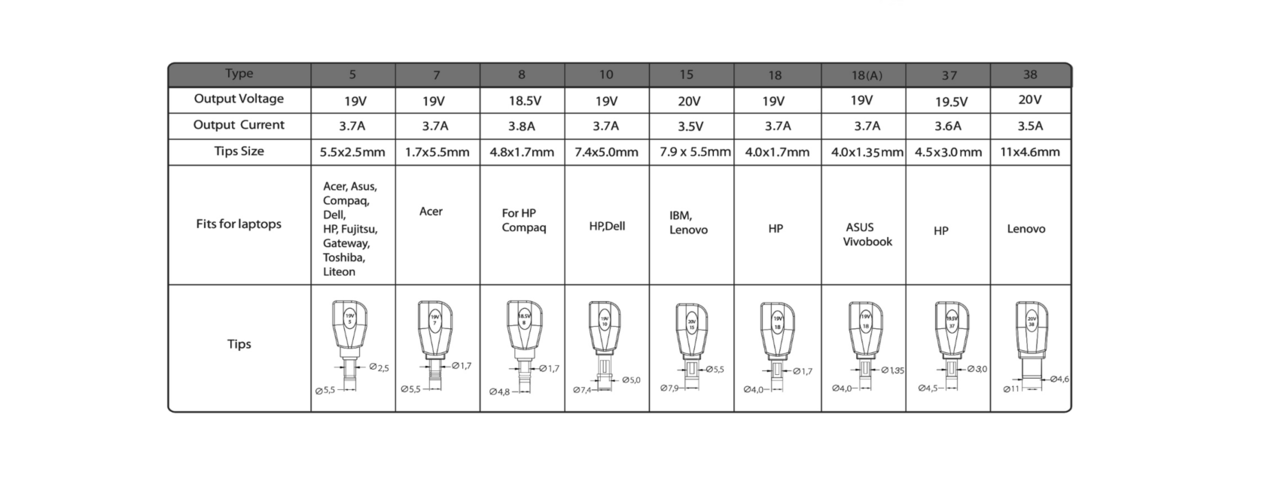 • 9 adaptateurs, faciles à installer simplifient le choix du bon adaptateur pour votre ordinateur portable