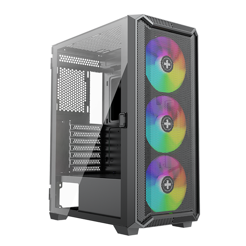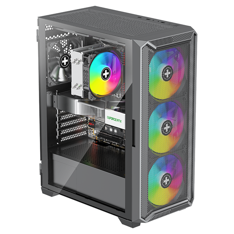 Three ARGB fans in the front illuminate the PC, creating a unique gaming atmosphere.