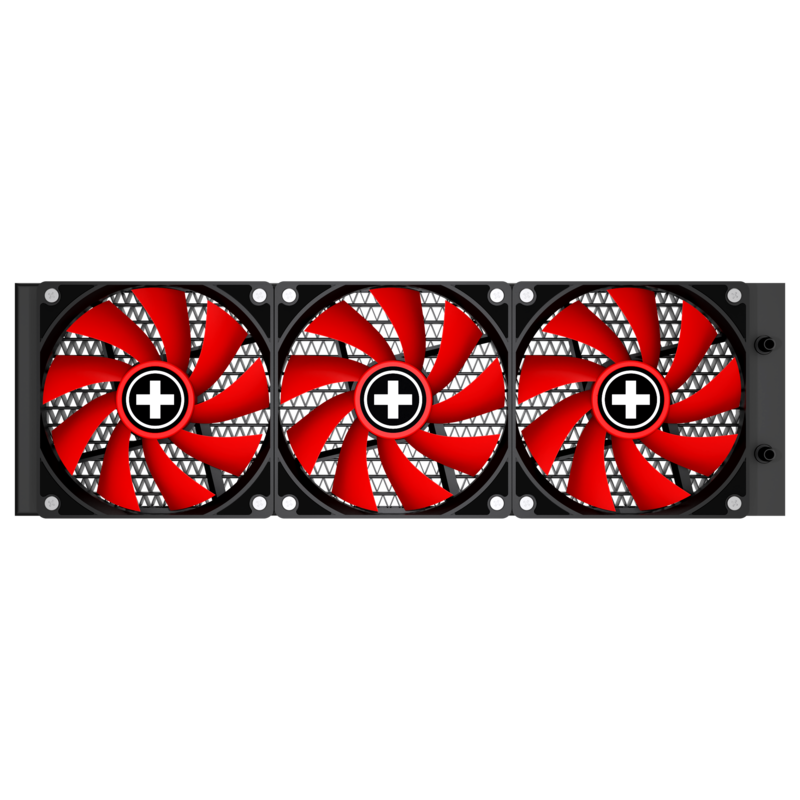 Available as 360mm version with a white LED lit pump head and 3 REDWING PWM fans.